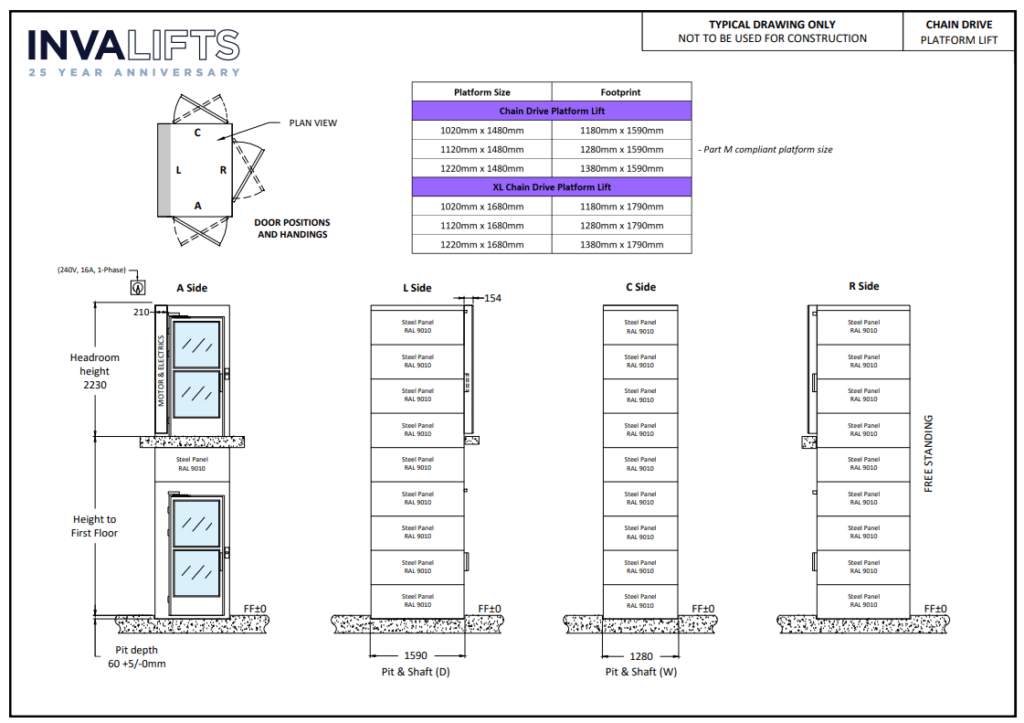 The lift is supplied with a self-supporting shaft, so no machine room or complex structural work is needed. Powered by an energy-efficient chain drive, it delivers smooth performance while keeping maintenance requirements low.