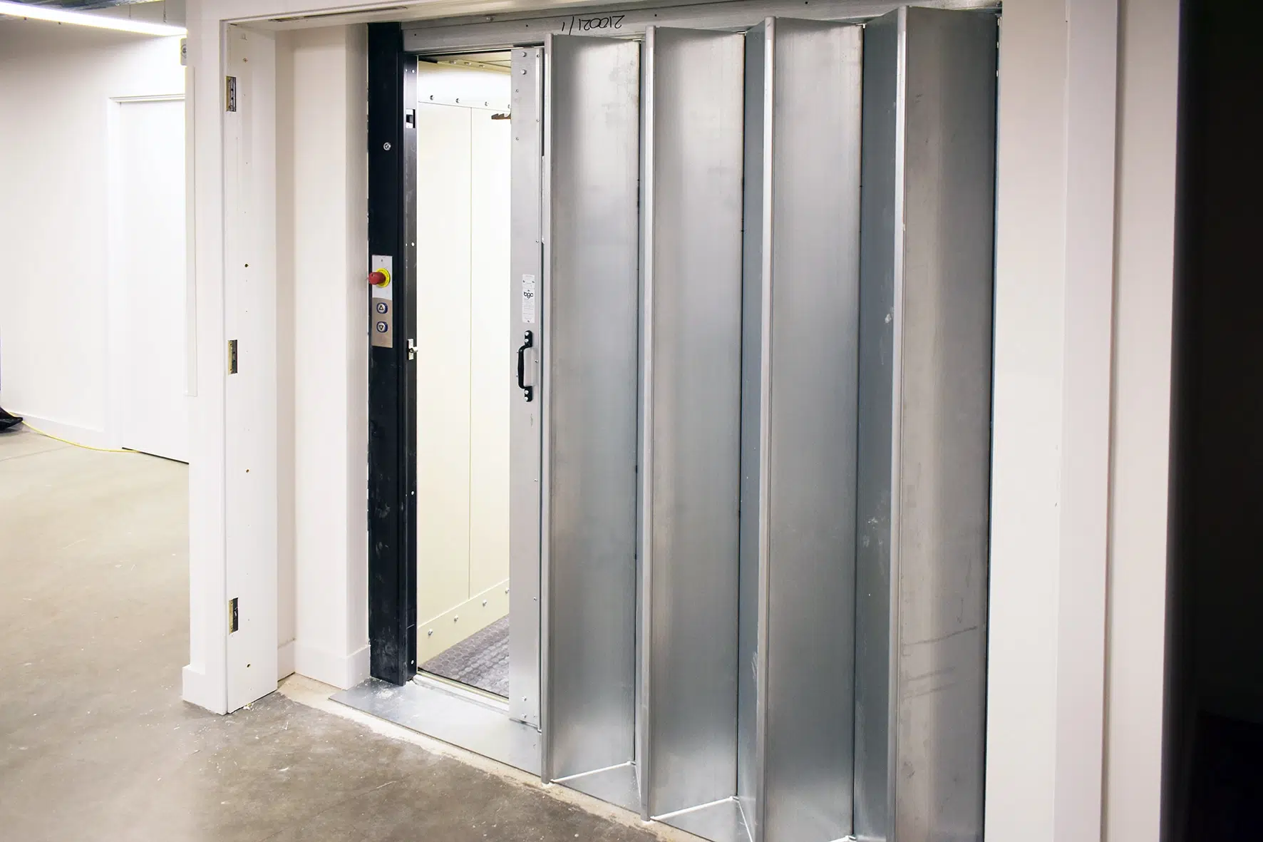 - Goods with attendant model including car operating panel, constant pressure controls, emergency stop, alarm system, light curtain and optional telephone
